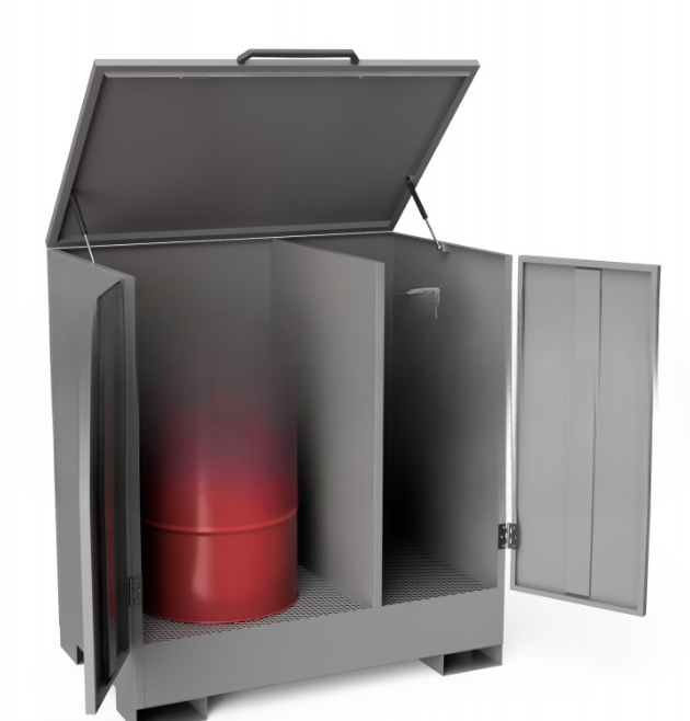 - Позволяет хранить бочки и другие емкости небольших размеров с горючими и загрязняющими воду жидкостями.