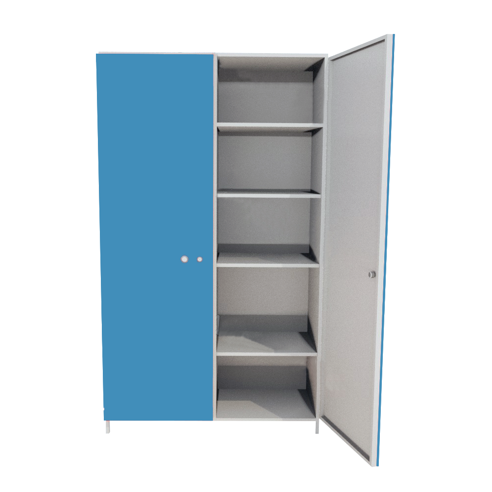 Шкаф ШИМ-05-04 разделен на две секции. В каждой секции расположены пять металлических полок. Шкаф ШИМ-05-04 оборудован двумя дверками с замком и ручкой.