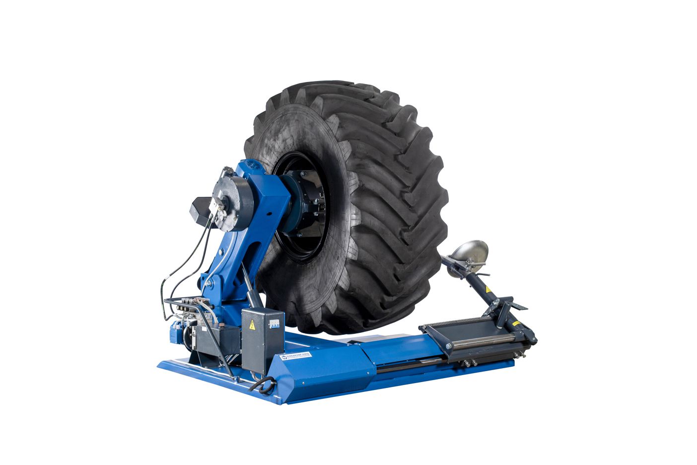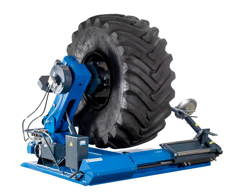 Стенд шиномонтажный для колес грузовых автомобилей, с/х и спецтехники. Диаметр обода от 14 до 42 дюймов (до 52 дюймов с удлинителями - опция), диаметр колеса - до 2300 мм., ширина колеса - до 910 мм.