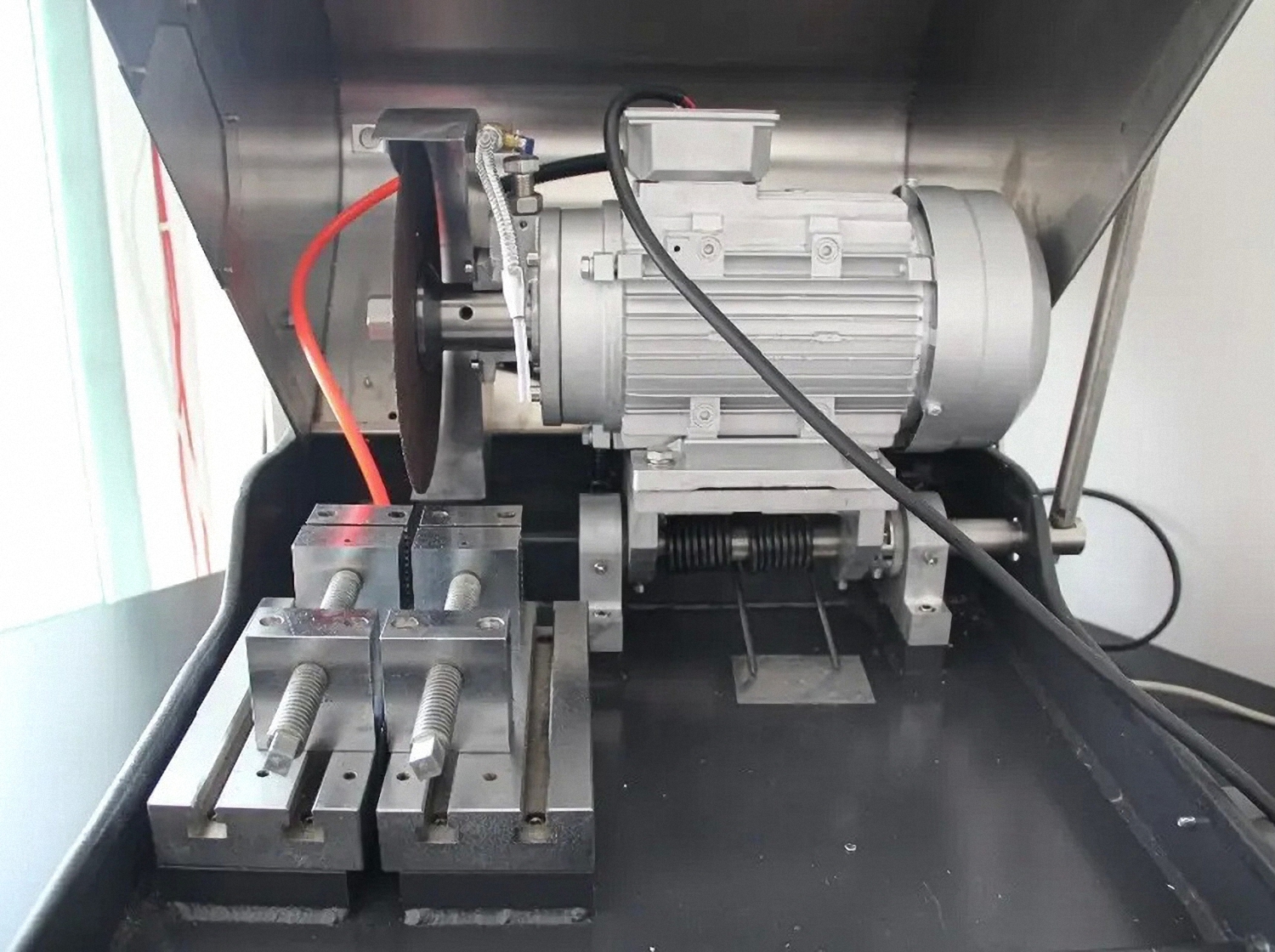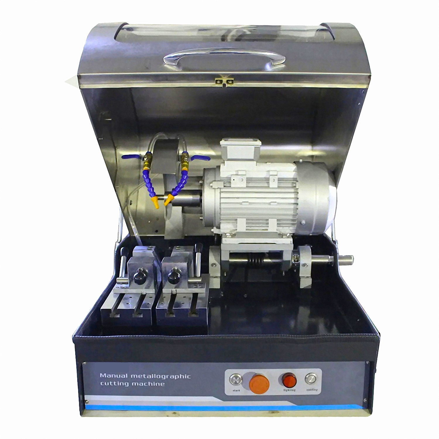 Станок оснащен системой охлаждения, для предотвращения перегрева образцов при резке и сжигания структуры металлографических и образцов из других материалов.