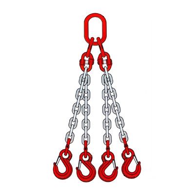 Строп цепной четырехветвевой 4СЦ состоит из 4-х цепных ветвей с крюками, связанных овальным звеном. Стропы 4СЦ производятся по стандарту РД 10-231-98 с запасом прочности 4:1, из стали класса прочности 8.