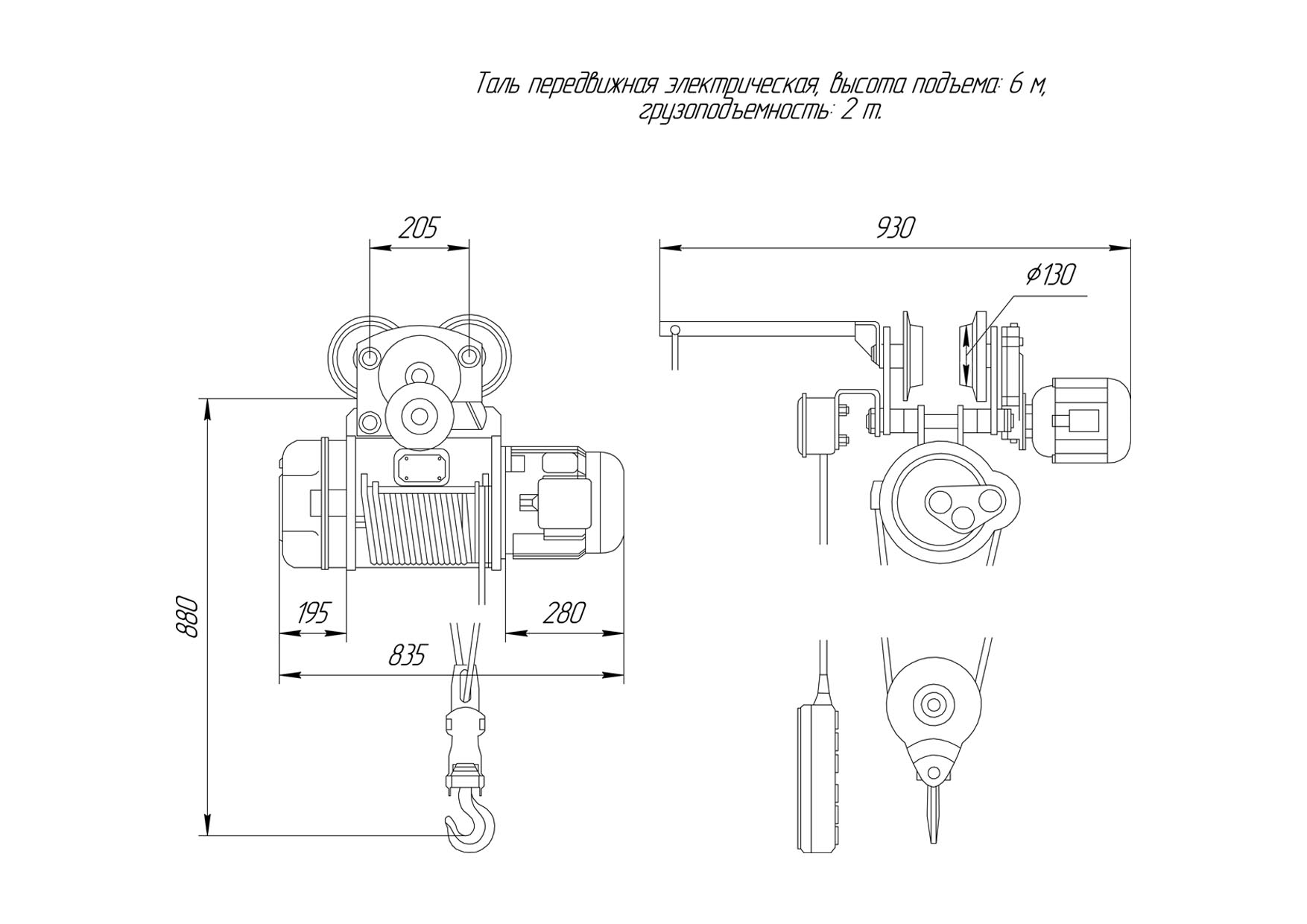 Передвижная электрическая канатная таль ТЭ 200 грузоподъемностью 2000кг оснащена кареткой передвижения с электроприводом. Таль предназначена для подъема, удержания и опускания различных грузов а также для горизонтального перемещения грузов вдоль монорельсового пути двутаврового профиля.