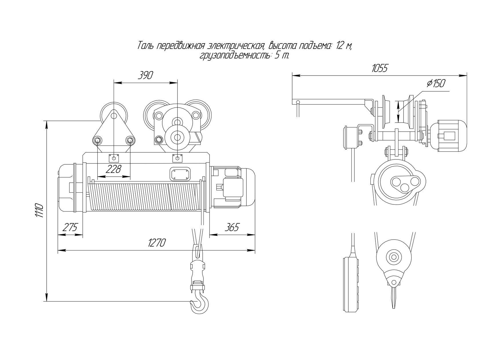 Передвижная электрическая канатная таль ТЭ 500 грузоподъемностью 5000кг оснащена кареткой передвижения с электроприводом. Таль предназначена для подъема, удержания и опускания различных грузов а также для горизонтального перемещения грузов вдоль монорельсового пути двутаврового профиля.