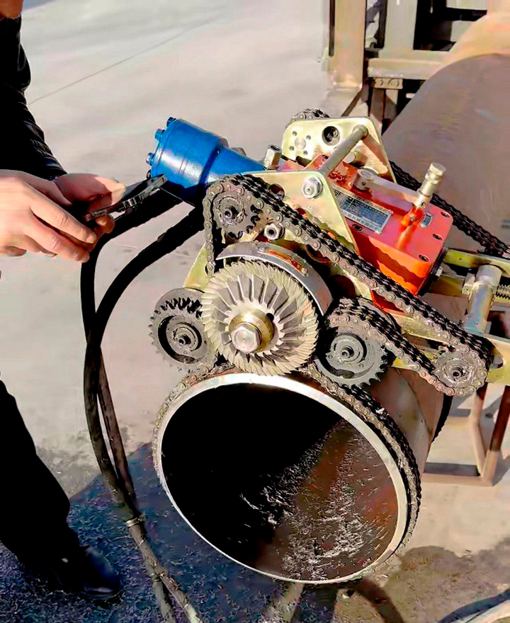 Гидравлический труборез предназначен для точной и быстрой резки стальных труб диаметром до 1000 мм. Гидравлический привод обеспечивает высокую производительность при компактных размерах, что позволяет использовать подобные труборезы на производстве.