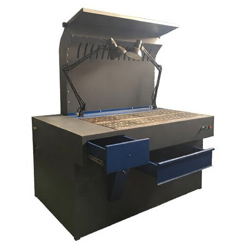 Для удаления вредных веществ с поверхности стол сварщика ССН-01 оборудован вытяжной вентиляционной системой со встроенным вентилятором.