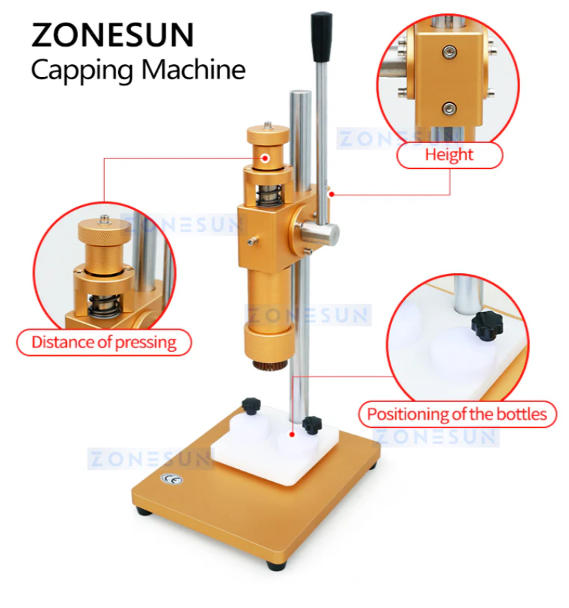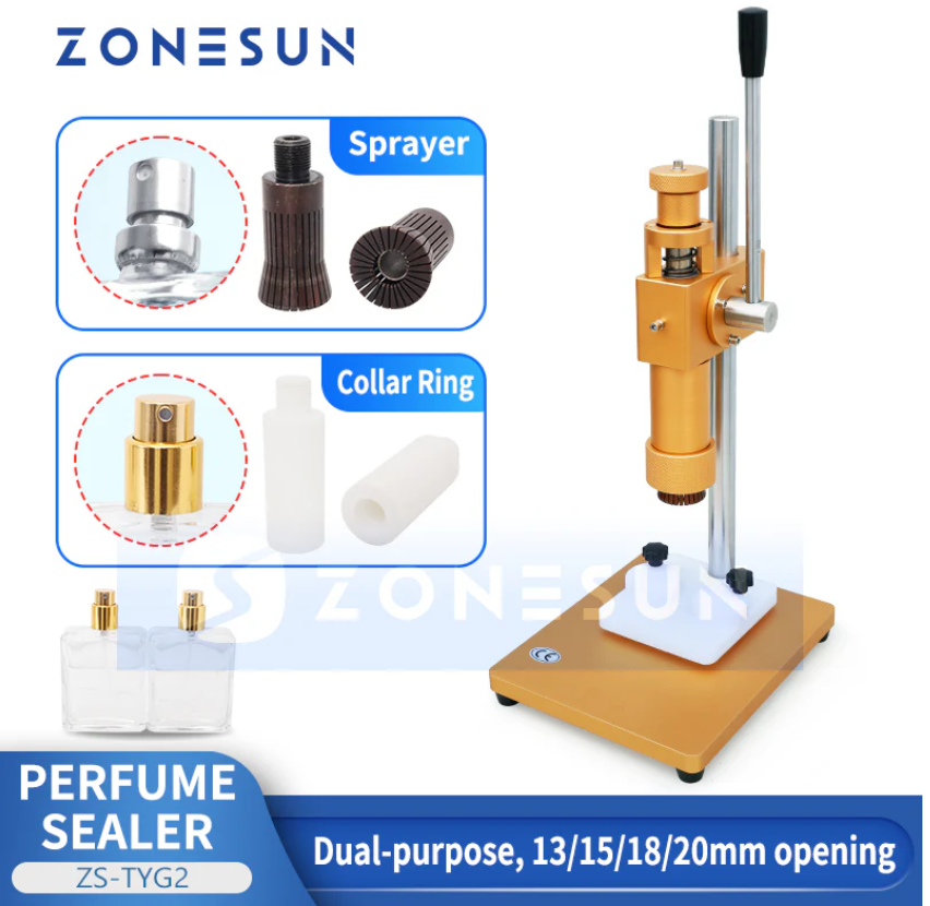 Это настольный укупорочный инструмент для духов. Он выпускается в двух цветах — золотом и серебряном. Изготовлен из высококачественной легированной стали, прочной и долговечной. Он многофункционален, то есть может не только обжимать колпачки распылителей, но и запечатывать кольца флаконов с духами.