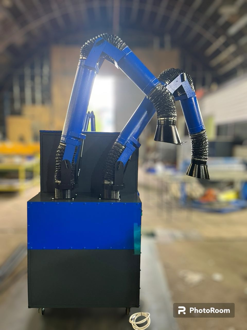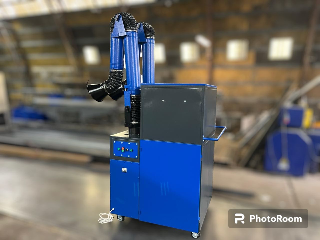 Фильтровентиляционная установка перемещается на четырех колесных опорах при помощи рукоятки, расположенной на каркасе, что позволяет организовать работу установки в необходимом месте проведения сварочных работ. Для удобства запуска на рабочем месте фильтровентиляционная установка оборудована специальным разъемом (розетка и вилка) для подключения к электрическому кабелю питающей производственной сети.