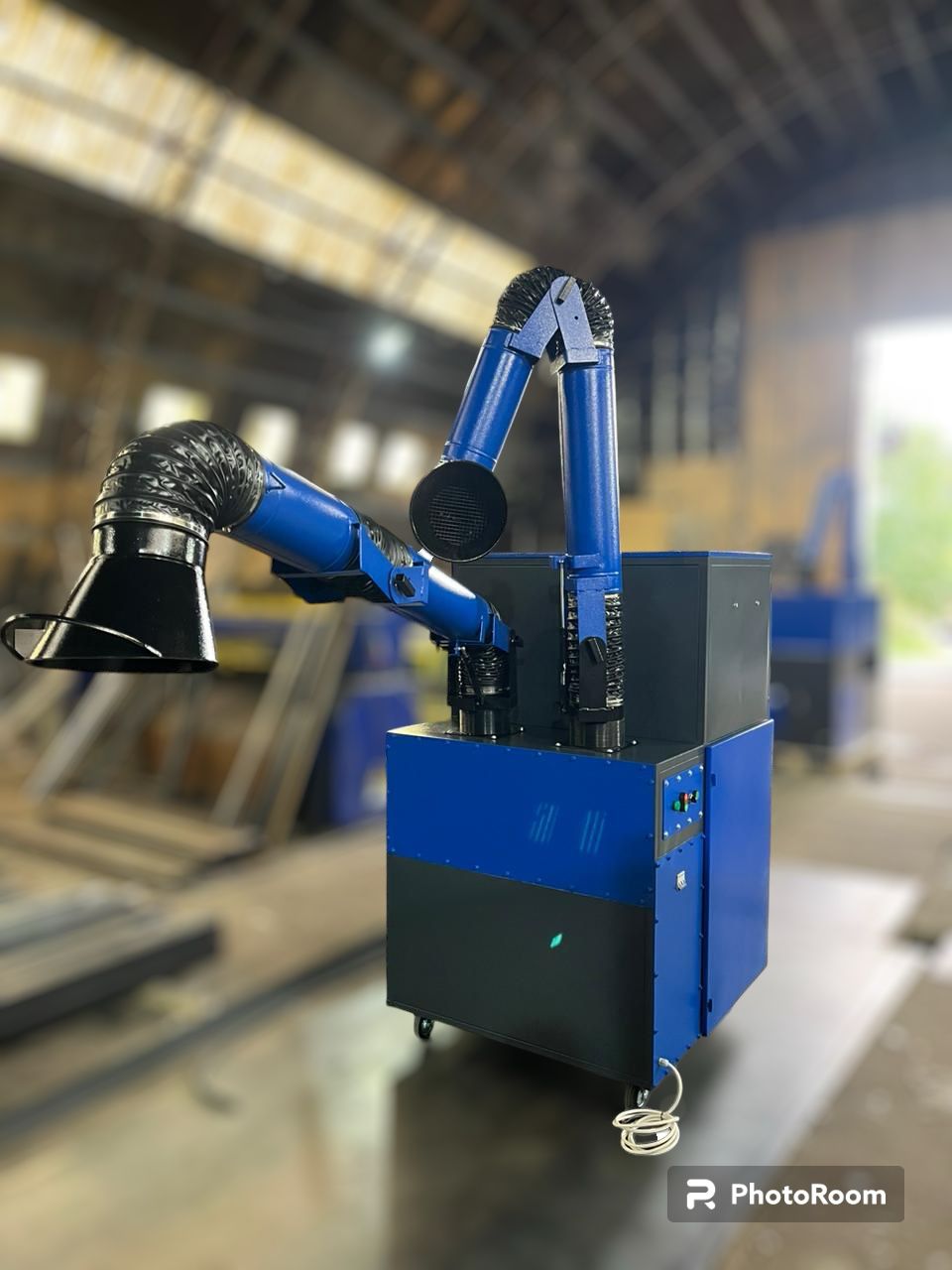 Установленное поворотно-вытяжное устройство позволяет производить забор сварочного аэрозоля и пыли из зоны проведения сварочных работ в радиусе 2,0 м от установки. ПВУ поворачивается на 360 градусов вокруг своей оси, легко перемещается и фиксируется в нужном положении. Воздухоприемная воронка данного устройства вращается в нужную сторону на 110 градусов от оси в любой плоскости.