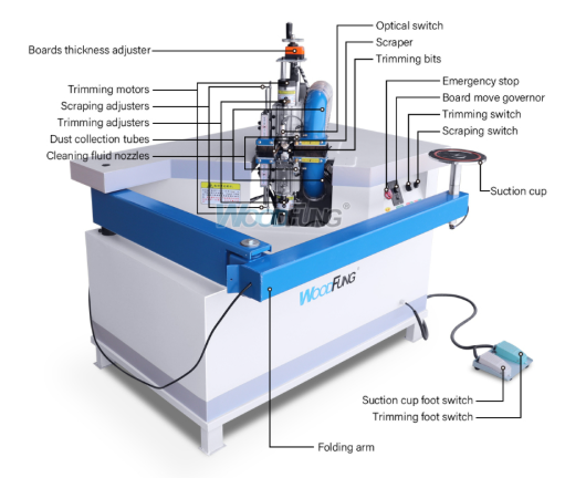 Станок для криволинейной обрезки MY-13 оснащен складным рычагом, присоской и небольшой платформой, которую можно использовать для обрезки как больших, так и малых досок.