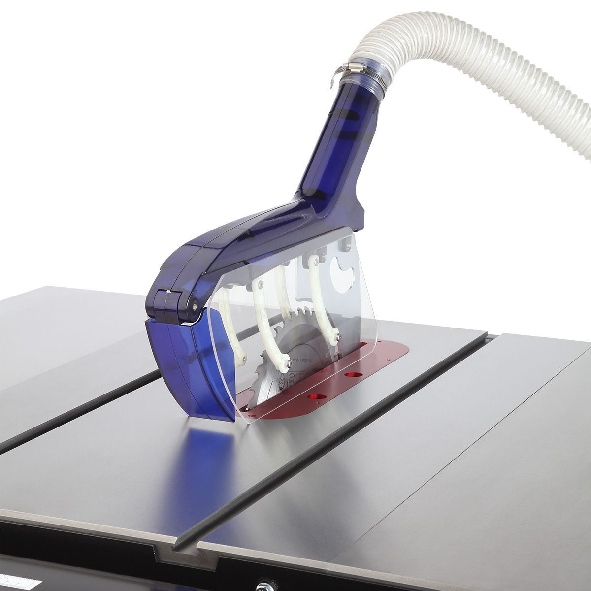 Кожух пильного диска устанавливается на расклинивающий нож и оснащен адаптером для подключения шланга пылеудаления диаметром 50 мм. Боковые панели кожуха выполнены по уникальной схеме: двухрычажные механизмы обеспечивают их плоскопараллельное движение. Это позволяет каждой панели независимо отклоняться при обработке заготовок разной высоты, сохраняя защиту оператора от стружки и пыли.