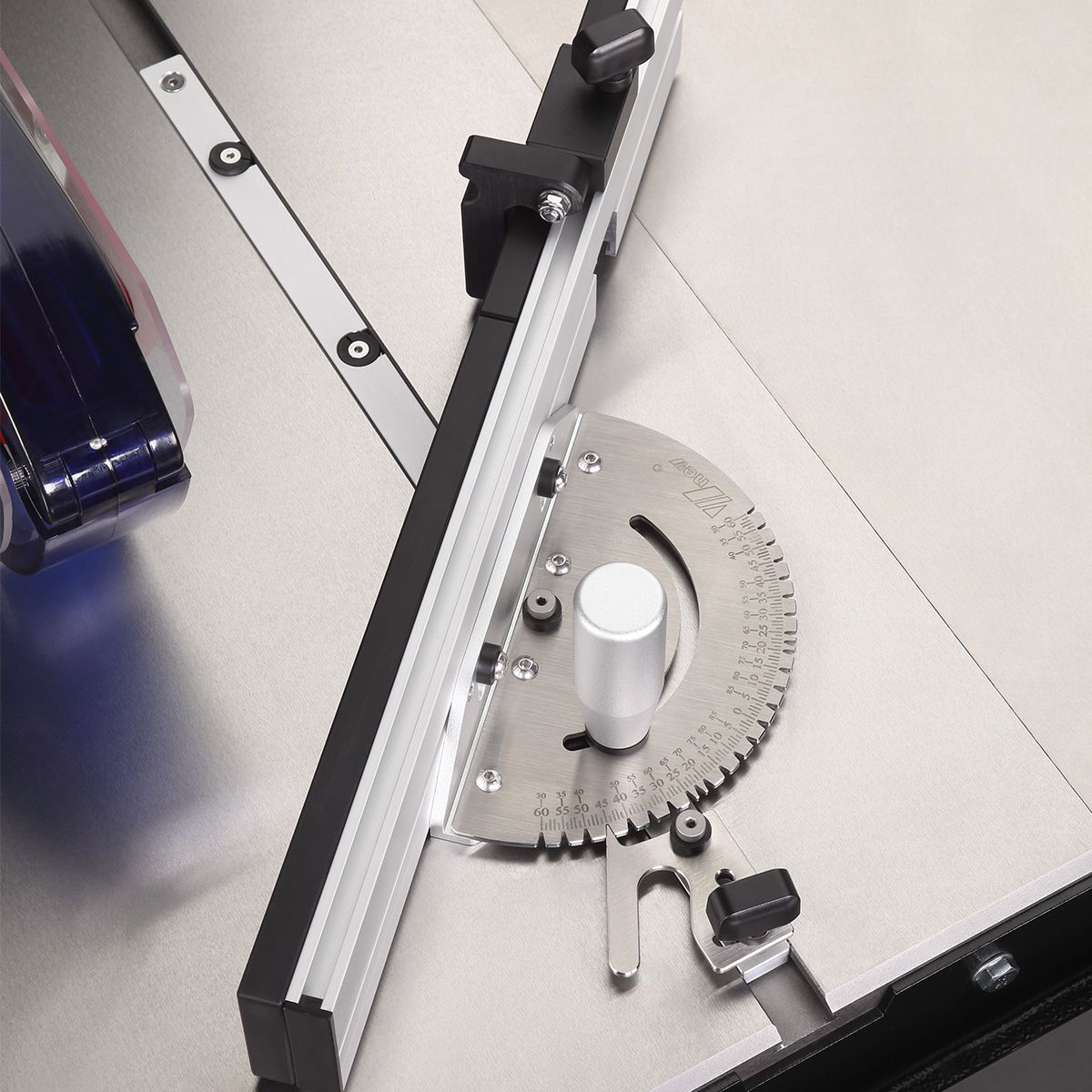 Угловой упор фиксируется в 27 положениях с шагом 5° и позволяет выполнять точные резы под углом от -60° до +60°