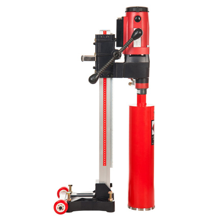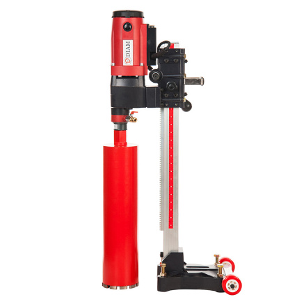 Подходит для выполнения большого объема работ по сверлению отверстий под прокладку электрических и телевизионных кабелей, сантехнических и вентиляционных труб. Максимальный рекомендуемый диаметр сверления по железобетону до 130 мм, по кирпичу 160 мм. Машина снабжена механической фрикционной муфтой, которая защищает электродвигатель от резкой нагрузки (заклинивания коронки в бетоне).
