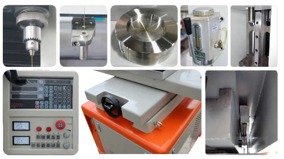 Скорость сверления отверстия 30мм - 60мм в глубину за минуту (отлична для различных материалов). Может сверлить маленькие отверстия на разных электропроводных материалах, особенно нержавеющей стали, закаленной стали, меди, алюминии и твердых сплавах и т.д. Ось Z с функцией фиксации глубины. Может просверливать отверстия с диаметром 0,3мм - 3,0мм (соотношение глубина-диаметр 300:1). Может просверлить предварительное отверстие, отверстие фильтра, отверстие форсунки, газовую раковину, групповые отверстия и т.д. Может сверлить на наклонной или изогнутой поверхности. Может легко эродировать сверло и сверло с насечками и т.д., которые поломались в заготовке, не разрушая резьбу в отверстиях.