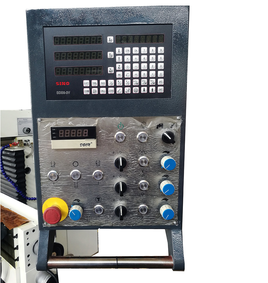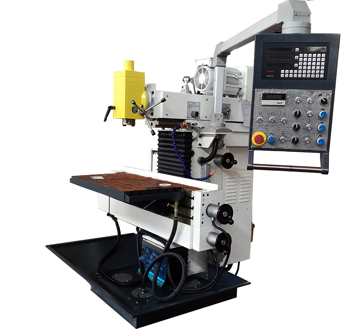 Станок X8140 с УЦИ имеет вертикальный и горизонтальный шпиндель, а так же консоль и серьгу, с помощью которой можно осуществлять резание дисковыми фрезами.