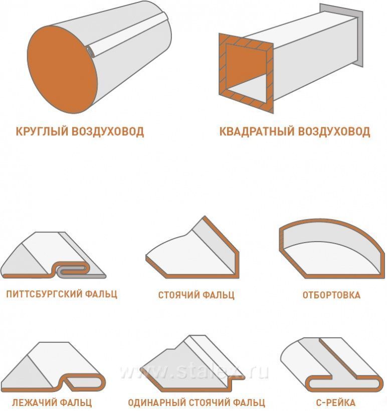 Питтсбургский фальц (угловой, американка) – самый распространенный способ производства воздуховодов прямоугольного сечения, как прямых участков, так и фасонных деталей |
