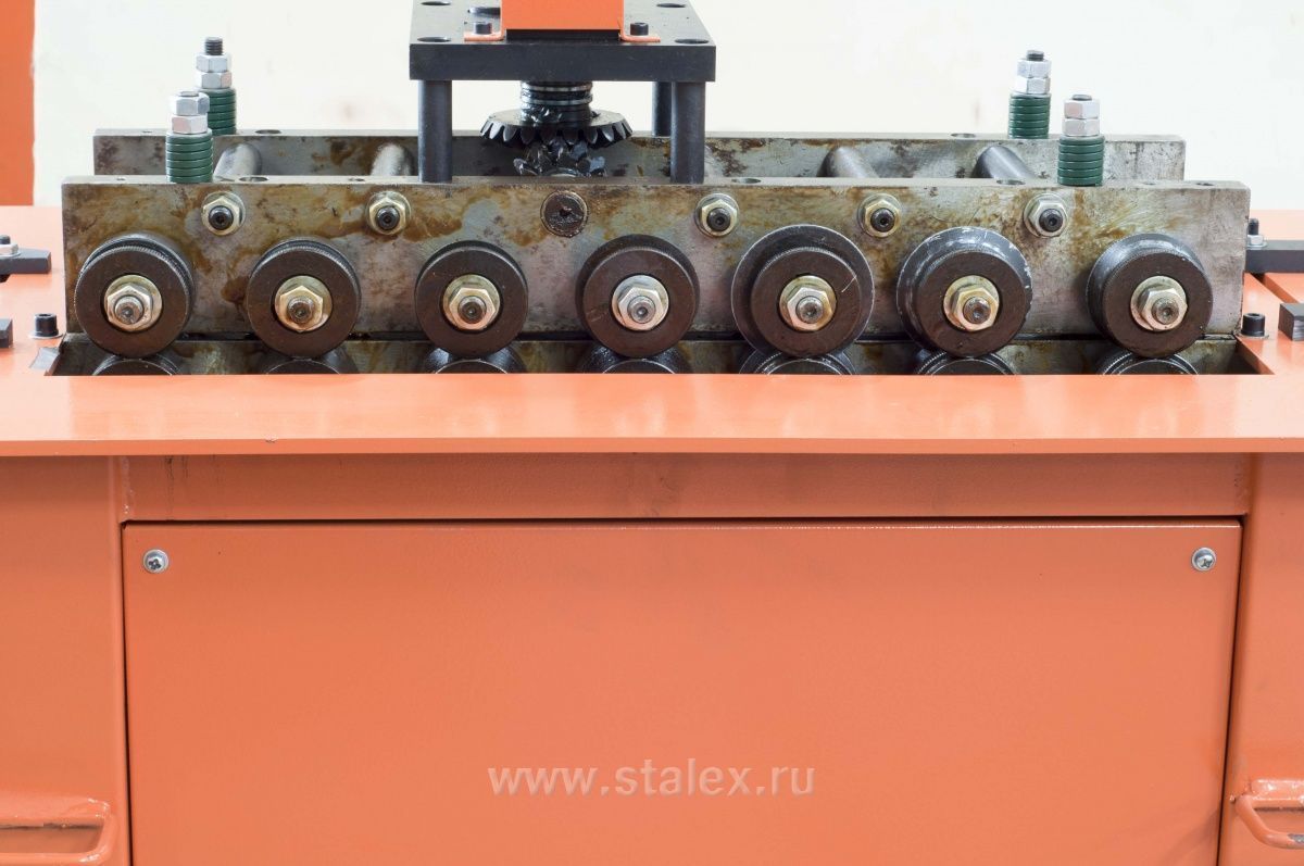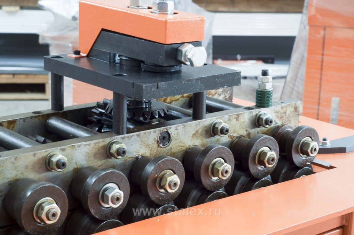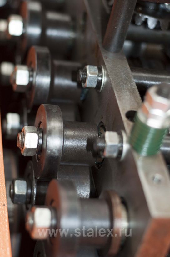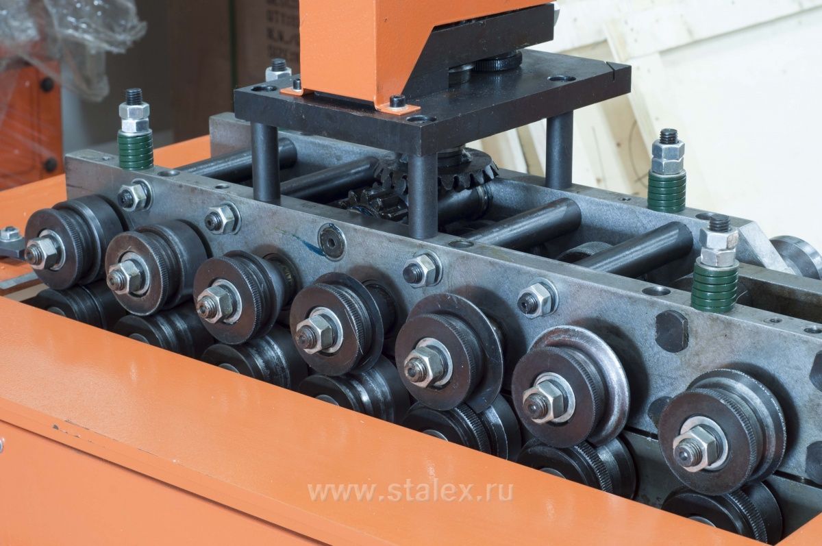 • Отличительными особенностями фальцепроката Stalex LC-12R является отсутствие необходимости замены роликов. Переналадка с одного типа на другой занимает меньше минуты и заключается в перемещении направляющей, которая отвечает за заход материала под ролики.