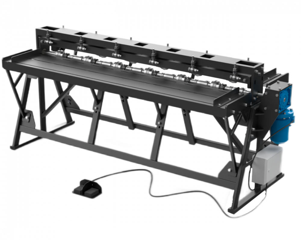 Специальная система фиксации роликов на валу дает возможность изменять шаг прокатки ребер жесткости, путем перемещения роликов на валах.