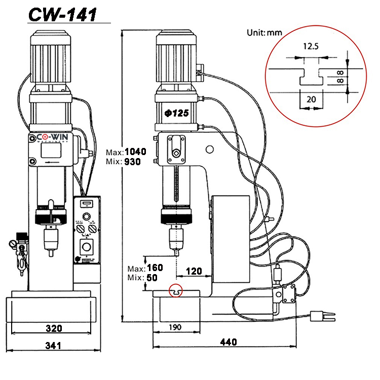 Пневматическая орбитальная клепальная машина CW-143 предназначена для формирования головки полнотелой заклепки диаметром до 8 мм (а пустотелой, трубчатой - до 15 мм) холодным, безударным способом, методом накатывания. Поверхность заклепки получается гладкая, поверхность изделия и покрытие не повреждается во время клепки