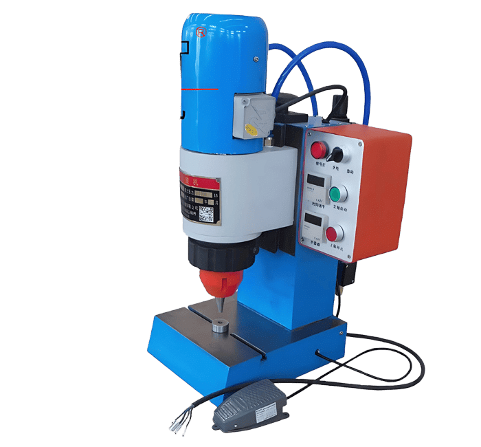 Модель JM3TQ-B представляет собой небольшой настольный пневматический клёпочный станок с радиальной конструкцией. Силовая головка станка регулируется вверх и вниз для обработки различных типов заготовок. Пневматическая система оснащена системой аэрозольной смазки и двухходовым регулятором скорости хода поршня для эффективного управления скоростью хода поршня. Электрическая система управления оснащена счётчиком и реле времени для простоты и удобства эксплуатации. На рабочем столе имеется Т-образный паз для крепления зажимного устройства, а позиционирующее отверстие соосно шпинделю обеспечивает точность клёпки ±0,05 мм.