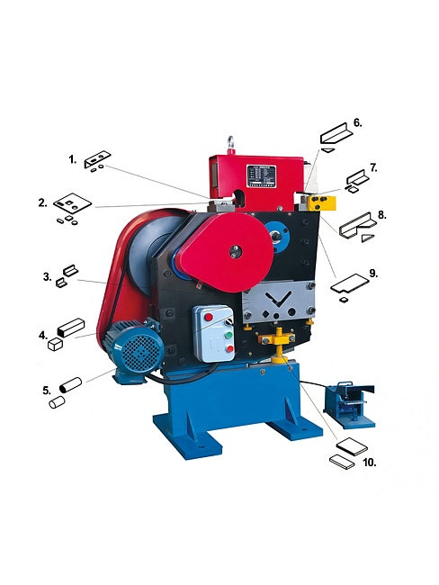 1. Станция пробивки отверстий в уголке — предназначена для выполнения пуансонных операций по пробивке отверстий в уголке различных сечений, применяется при изготовлении монтажных и соединительных элементов.