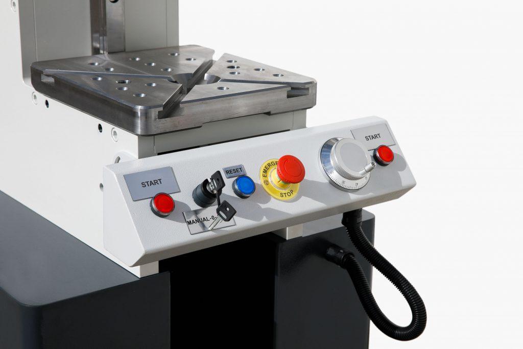 - Ход пресса регулируется электронным контроллером, который позволяет устанавливать положение рабочего инструмента с точностью до 0,01 мм, что дает оператору возможность определять конечные рабочие положения.