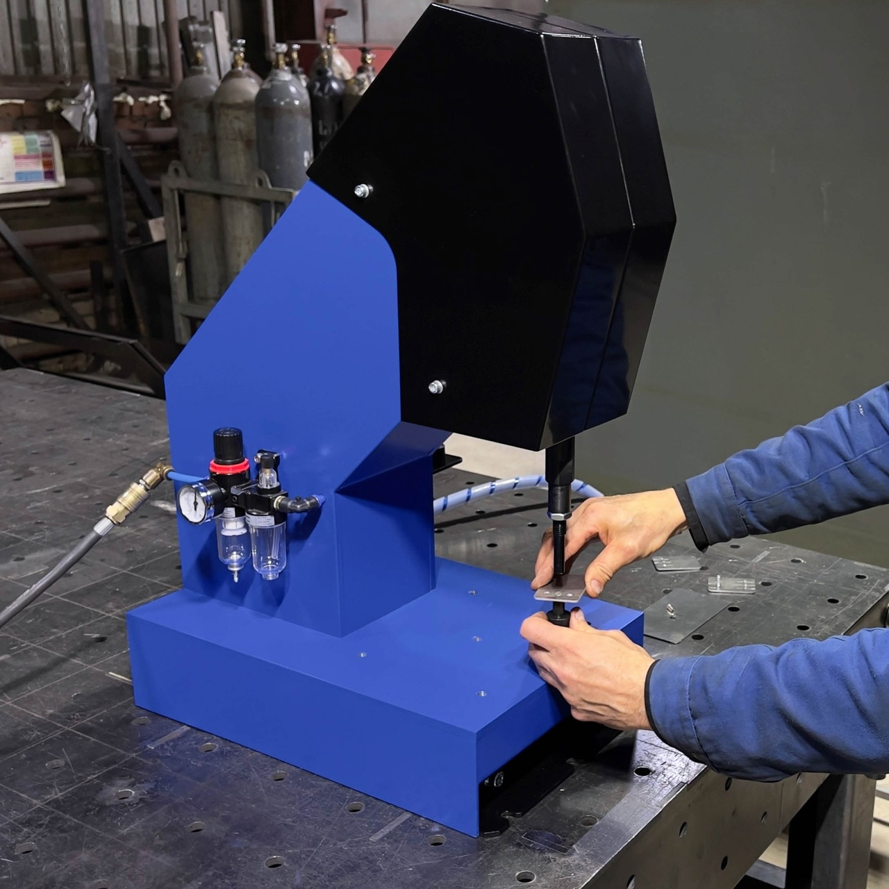 Незаменим на производствах мелкими сериями в сжатые сроки, а также для работы там, где требуется мощный малогабаритный станок для запрессовочного крепежа в ограниченном пространстве.