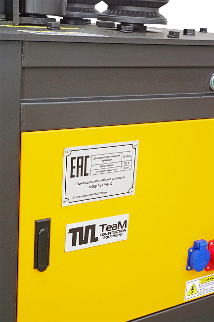 Станок для гибки арматуры в обруч или дугу TeaM GWH32 - предназначен для изготовления изогнутых элементов из арматурной стали до 28 мм. Этот станок идеально подходит для строительных объектов, которые занимаются укладкой железобетонных конструкций, а также для производства арматурных изделий.