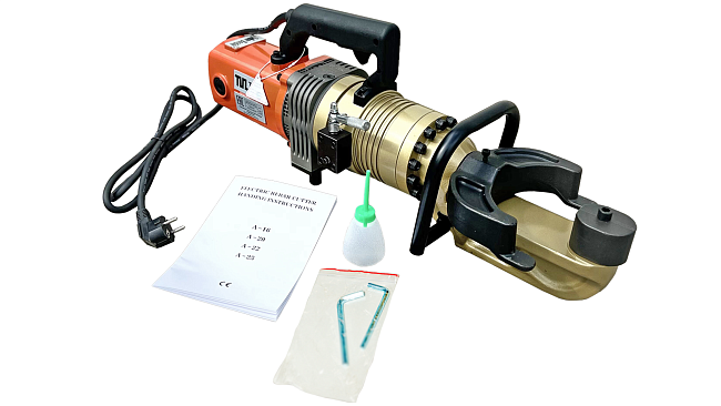 Электрический мобильный станок RB-32 предназначен для гибки арматурных стержней. Работает от сети с напряжением 220 В и обладает двигателем мощностью 1800 Вт. Этот станок может обрабатывать арматуру диаметром до 32 мм. Старшая модель с весом 28,8 кг остается достаточно мобильным инструментом, который может быть переставлен одним человеком. Удобная ручка облегчает процесс переноски станка по объекту. RB-32 используется в строительстве для создания арматурных каркасов различной сложности.