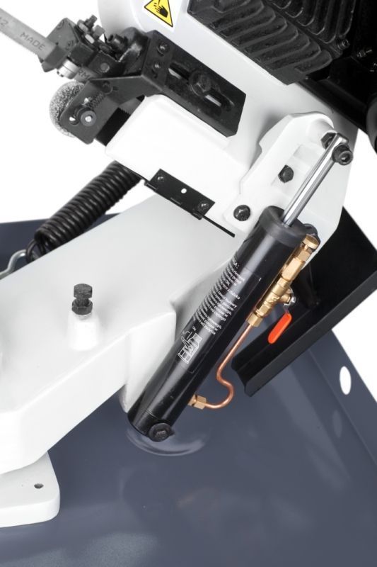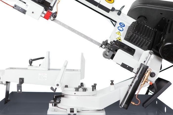 - Станок оборудован очищающими щётками, которые обеспечивают удаление стружки с двигающейся пильной ленты.