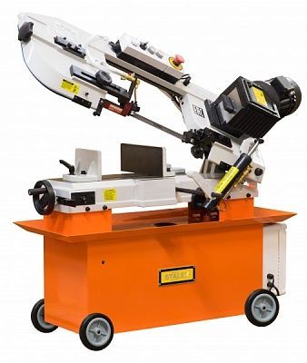 Стандартная модель мобильного ленточнопильного станка, разработана для резки черных металлов и других материалов с целиковым, полым или профильным сечением. Станок позволяет делать распилы заготовок диаметром до 180 мм в полуавтоматическом режиме с ручным возвратом пильной рамы в первоначальное положение. Пила опускается под собственным весом, станок оборудован дросселируемым гидравлическим цилиндрами подач, который позволяет автоматически подстраивать скорость опускания пильной рамы в зависимости от профиля заготовки, что обеспечивает оптимальные режимы распила. Станкам не требуется подключение к источнику сжатого воздуха.