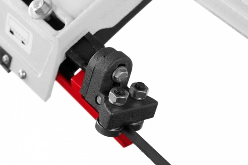 - Рама станка изготовлена из литого чугуна, что обеспечивает плавный ход пилы с низким уровнем вибрации.