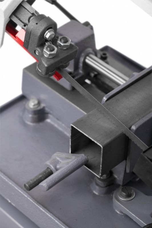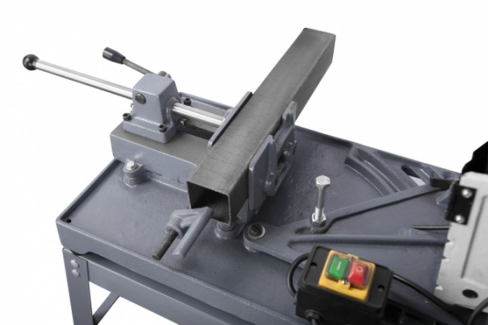 - Стабильность во время резки обеспечивают: стабильный рабочий стол из чугуна, тиски и рама, находящиеся на нём.