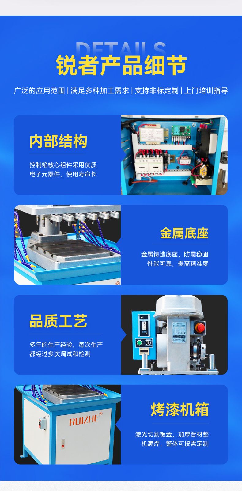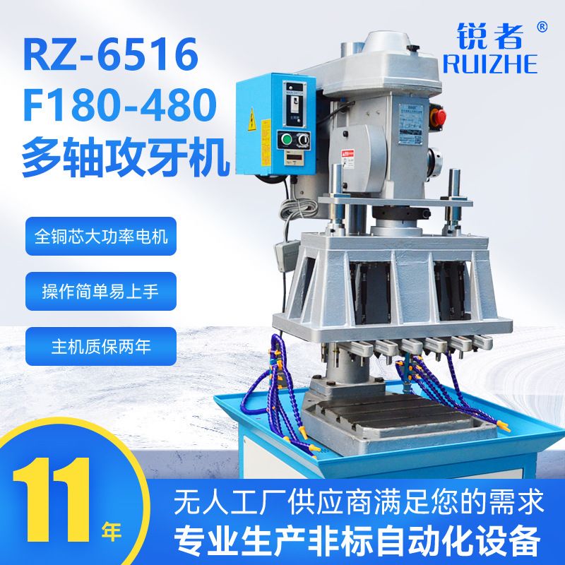 Станок для нарезания резьбы RZ-6516 — это профессиональное оборудование, предназначенное для высокопроизводительного и точного нарезания внутренней резьбы в металлических деталях. Его вертикальная компоновка и возможность установки нескольких шпинделей делают его идеальным решением для серийного производства в машиностроении, автомобилестроении, производстве компрессоров, электроники и других отраслях.