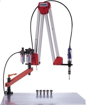 Пневматический резьбонарезной манипулятор AT-16/I предназначен для нарезания резьбы метчиками М3-М16; Два плеча и пневмопривод закреплены таким образом, что при движении резьбонарезной шпиндель всегда остается в одном и том же положении относительно поверхности стола, тем самым обеспечивается постоянство угла нарезания резьбы; Работа с более тяжелым материалом не требует дополнительного оборудования или перемещения на более просторное рабочее место; Низкий процент поломок, высокая точность нарезания резьбы; Станок имеет функцию реверс.