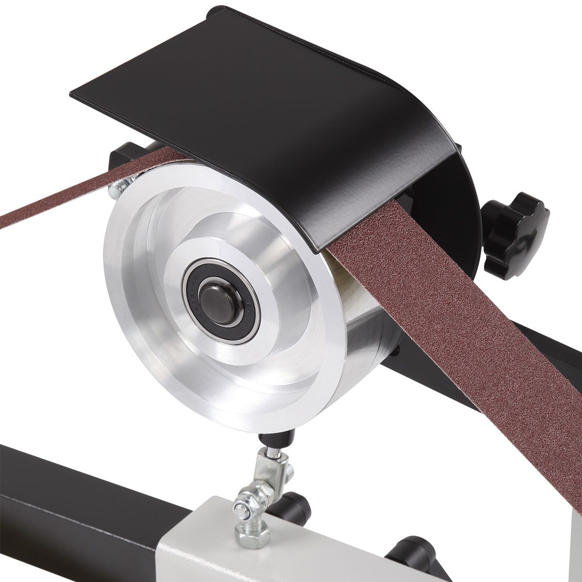 Станок оснащён асинхронным двигателем мощностью 1500 Вт, рассчитанным на длительную стабильную работу в режиме S1. Прямой привод передаёт мощность непосредственно на ленту, что положительно сказывается на эффективности и надёжности работы станка.