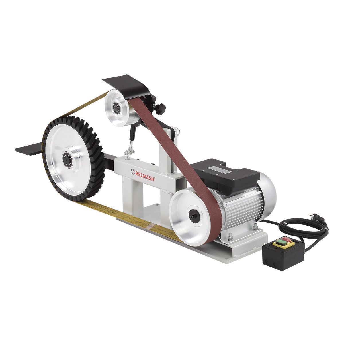 BELMASH BGM-822 ленточный шлифовальный станок для обработки металла и дерева. Используется в мастерских, на производственных предприятиях и в сервисных цехах, где требуется стабильная и точная шлифовка.