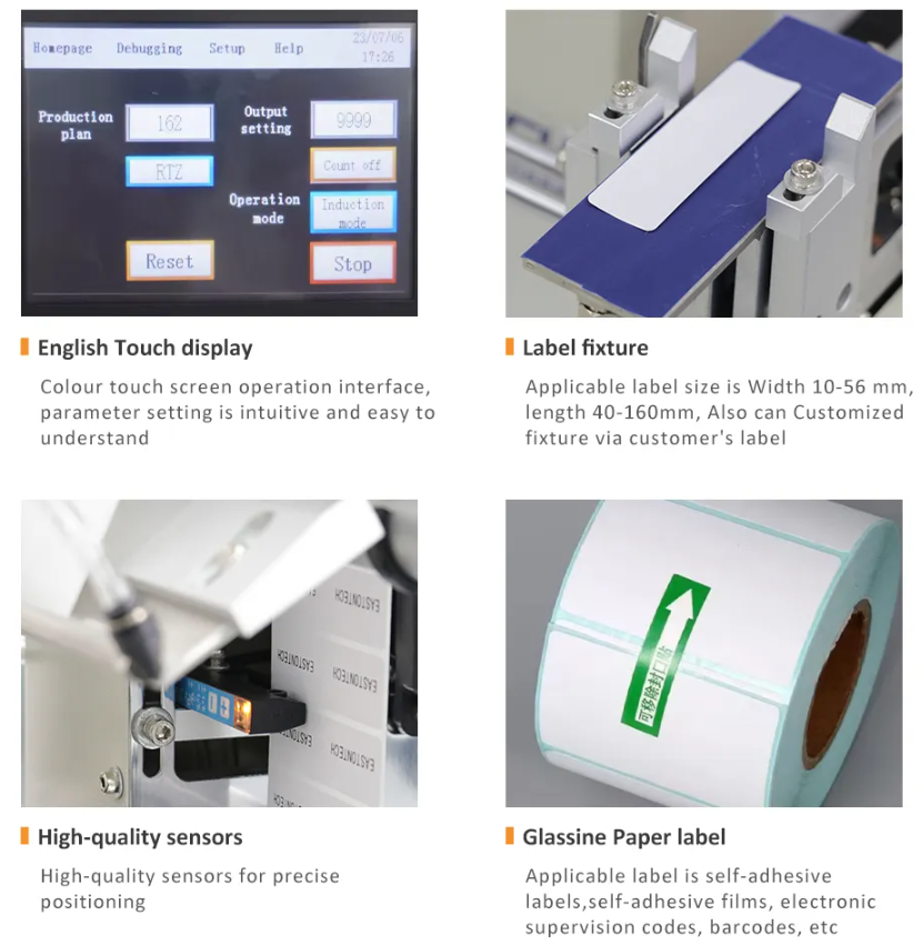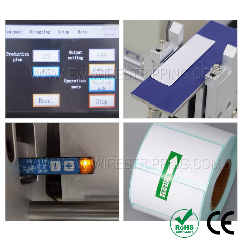 ● Этикетка автоматически подается на место, отделяется и автоматически складывается пополам на проволоке.