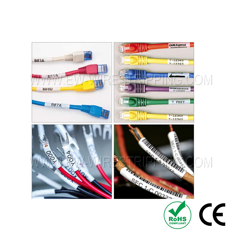 6. Широко используется в производстве проводов, жгутов проводов, шнуров питания, USB-кабелей, кабелей и других проводов. Он может быть адаптирован к различным прямоугольным этикеткам, i-образным этикеткам и может быть настроен для специальных этикеток.