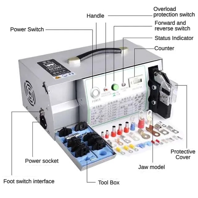 Полуавтомат для оперссовки EM-50B2 предназначен для работы с различными типами наконечников. Обжим производится на провода и кабели сечением до 50 мм2.