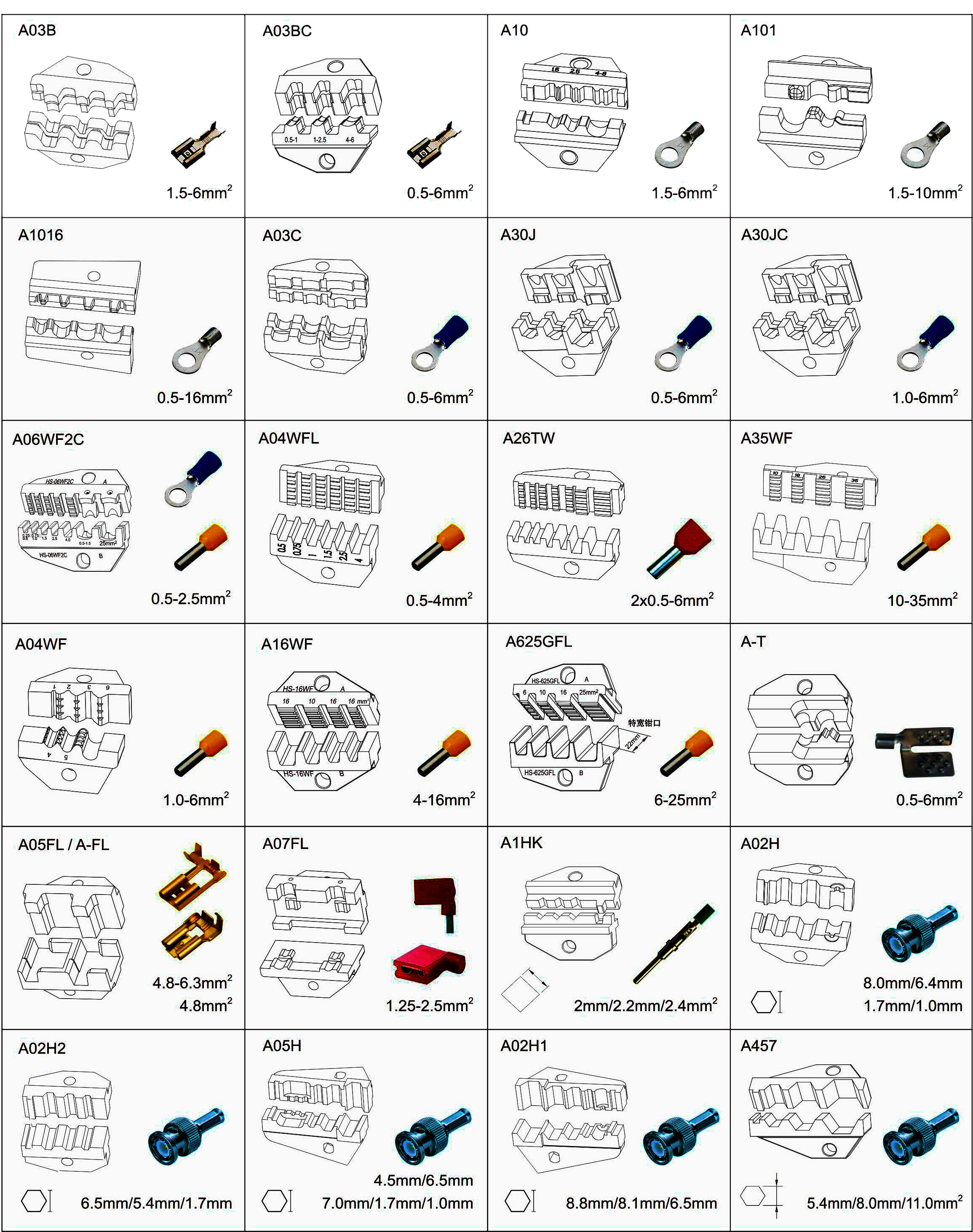 - Наборы матриц взаимозаменяемы с ручными инструментами для опрессовки компании-производителя