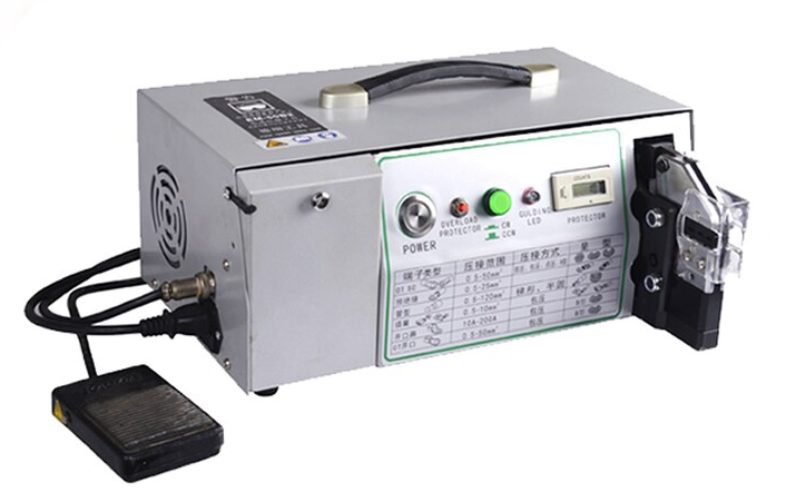 Полуавтомат для опрессовки предназначен для работы с различными типами наконечников. Обжим производится на провода и кабели сечением до 50 мм2. Усиленная обжимная матрица совместно с мощным мотором позволяют достичь высокого усилия обжима. Станок имеет 4 передачи, которые возможно настраивать после 400000-500000 циклов обжима, для постоянной повторяемости.