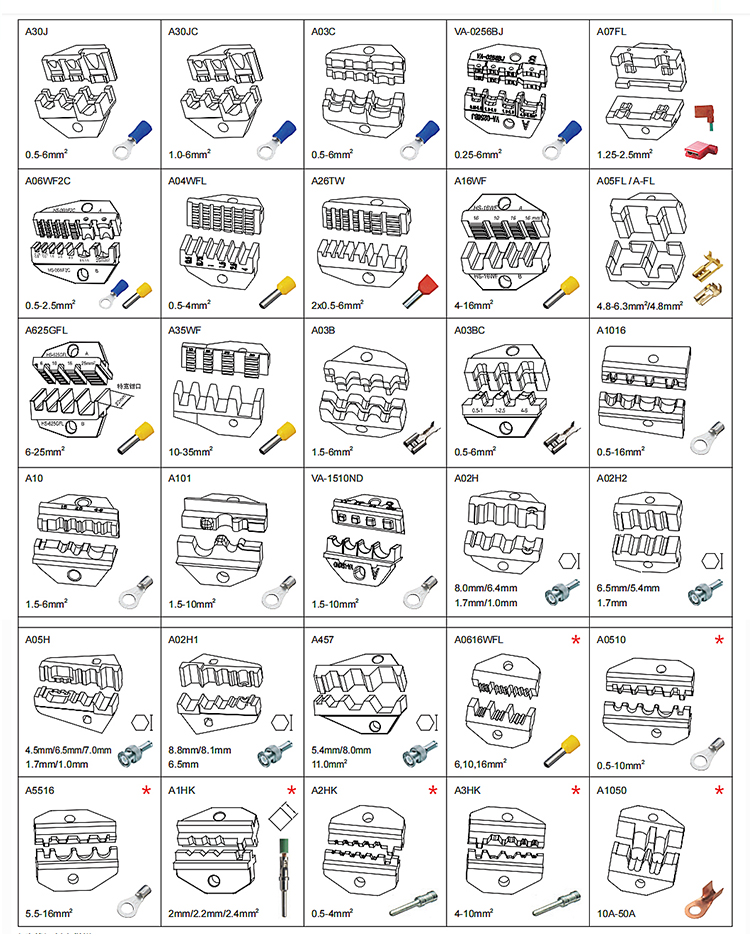- Наборы матриц взаимозаменяемы с ручными инструментами для опрессовки компании-производителя
