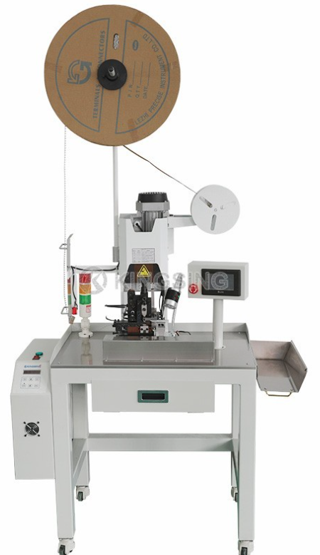 Полуавтоматическая машина для обжима плоского ленточного кабеля KS-T911 оснащается микропроцессором базового уровня, который может хранить в памяти до десяти программ для конкретной спецификации кабеля и параметров набора клемм. После смены матрицы оператору необходимо настроить соответствующее число, чтобы осуществить быстрое переключение между различными проводами и клеммами. Кроме того, при обжиме, машина может пропускать один провод (оставлять без обжима), если это требуется. Процесс отслеживается фотоэлектрическим датчиком. Положение обжима может быть запрограммировано (без механического вмешательства инструментами) через микропроцессор. Сигнальная лампа «светофор» отображает текущее рабочее состояние.