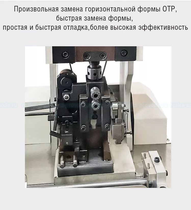 Используется для обжима: PH/ XH /EH/ZH и других клемм жгута проводов для репетиционной связи, SCN/SM/VH/DuPont. А также других ленточных разъемов с кабельными клеммами. Автоматизированное производство включает в себя резку фиксированной длины, точную зачистку проводов, сбалансированное усилие обжима клемм, благодаря чему клеммы жгута проводов обжимаются аккуратно.