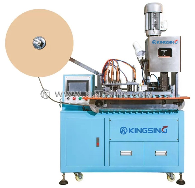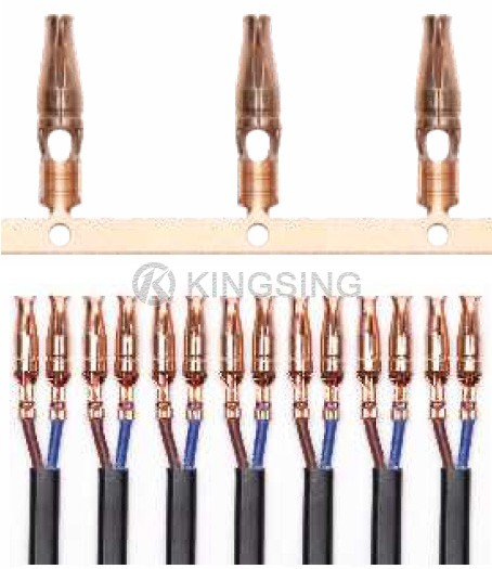 Это полуавтоматическая машина для зачистки и обжима двухжильных кабелей, подходящая для обжима клемм постоянного тока, штепсельных клемм, клемм с зубцами акулы и т. д. Оператору нужно только вставить конец кабеля в приспособление на конвейерной ленте, после чего он может автоматически завершает действия по зачистке внешней оболочки, зачистке жил и обжатию клемм.