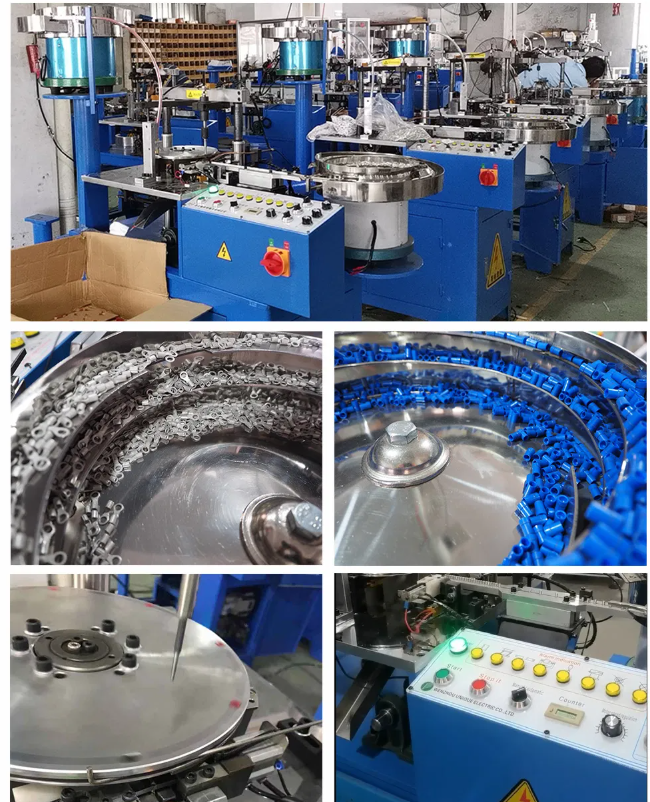 Автоматический станок для сборки клеммных наконечников — это разновидность станка для сборки клеммных наконечников на заказ, включая изолированные кольцевые клеммные наконечники, изолированные лопаточные клеммные наконечники, изолированные штыревые клеммные наконечники, изолированные ножевые клеммные наконечники и так далее.