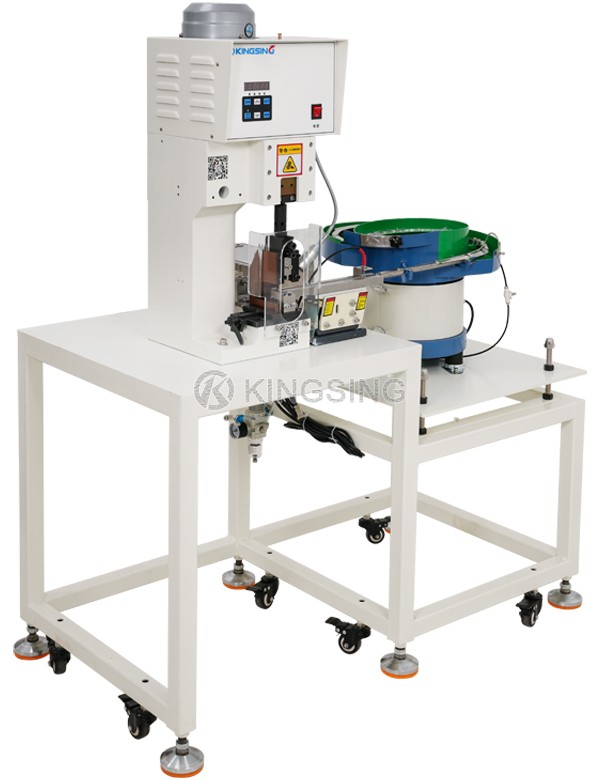 Полуавтоматическая машина для обжима разъемов RJ11/RJ45 специально разработана для обработки плоских сетевых кабелей. В ней используется вибрационная пластина для автоматической подачи разъемов RJ11/RJ45.