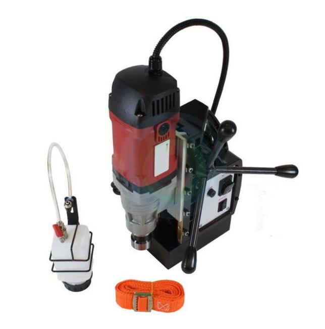 Мощный и надежный магнитный сверлильный станок с диаметром сверления до 35 мм в пластиковом кейсе.
