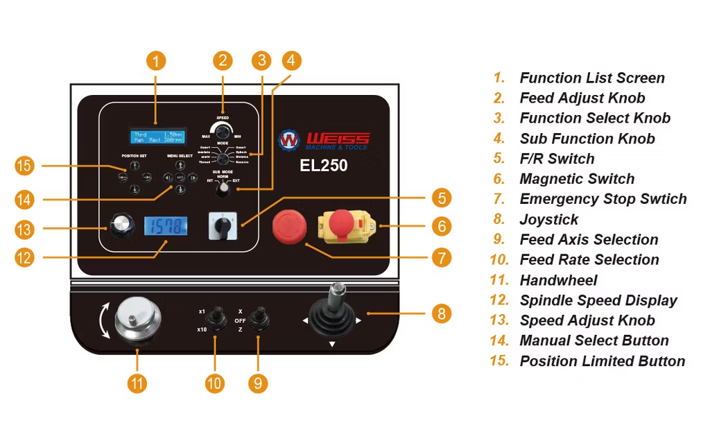 - электронный токарный станок WEISS EL300 предназначен для малого бизнеса и малых предприятий в условиях единичного и серийного производства, в качестве вспомогательного оборудования для промышленных и опытных производств.
