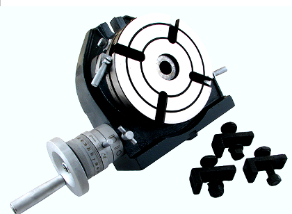 Стол поворотный горизонтально-вертикальный предназначен для применения в качестве дополнительной оснастки фрезерных станков. Конструкция корпуса стола позволяет его использование как в горизонтальном, так и в вертикальном положении, в том числе с применением задней бабки для надежного закрепления, при фрезеровании винтовых канавок и другой фрезерной обработки деталей типа «вал». Поворотный стол является необходимым приспособлением при выполнении операций кругового фрезерования, при выполнении и обработке различных элементов деталей расположенных через угловые расстояния. Стол поворотный обладает достаточной жёсткостью благодаря применению кривошипного устройства для фиксации планшайбы после перемещения на нужный угол.